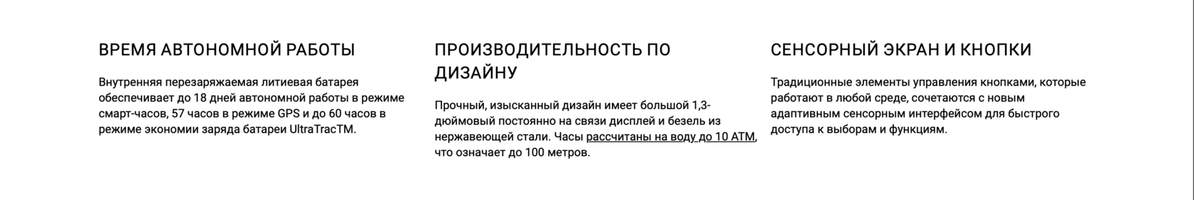 Основные характеристики: Материал стекла: Gorilla Glass Материал безеля: Нержавеющая сталь Материал корпуса: Армированный волокном полимер с металлической задней крышкой Совместимость с ремешками: QuickFit 22 мм Физический размер: Диаметр 47 мм, Толщина 14,5 мм, Ремешок из силикона подходит для запястья с окружностью 125-208 мм Сенсорный экран: ✔️ Цветной дисплей: ✔️ Размер дисплея: 1,3 дюйма (33,02 мм) диаметр Разрешение дисплея: 260*260 пикселей Тип дисплея: Трансфлективный Вес: 79 гр Время автономной работы: Режим смарт часов до 18 дней, режим экономии до 57 дней, режим GPS до 57 часов. Память: 16Гб